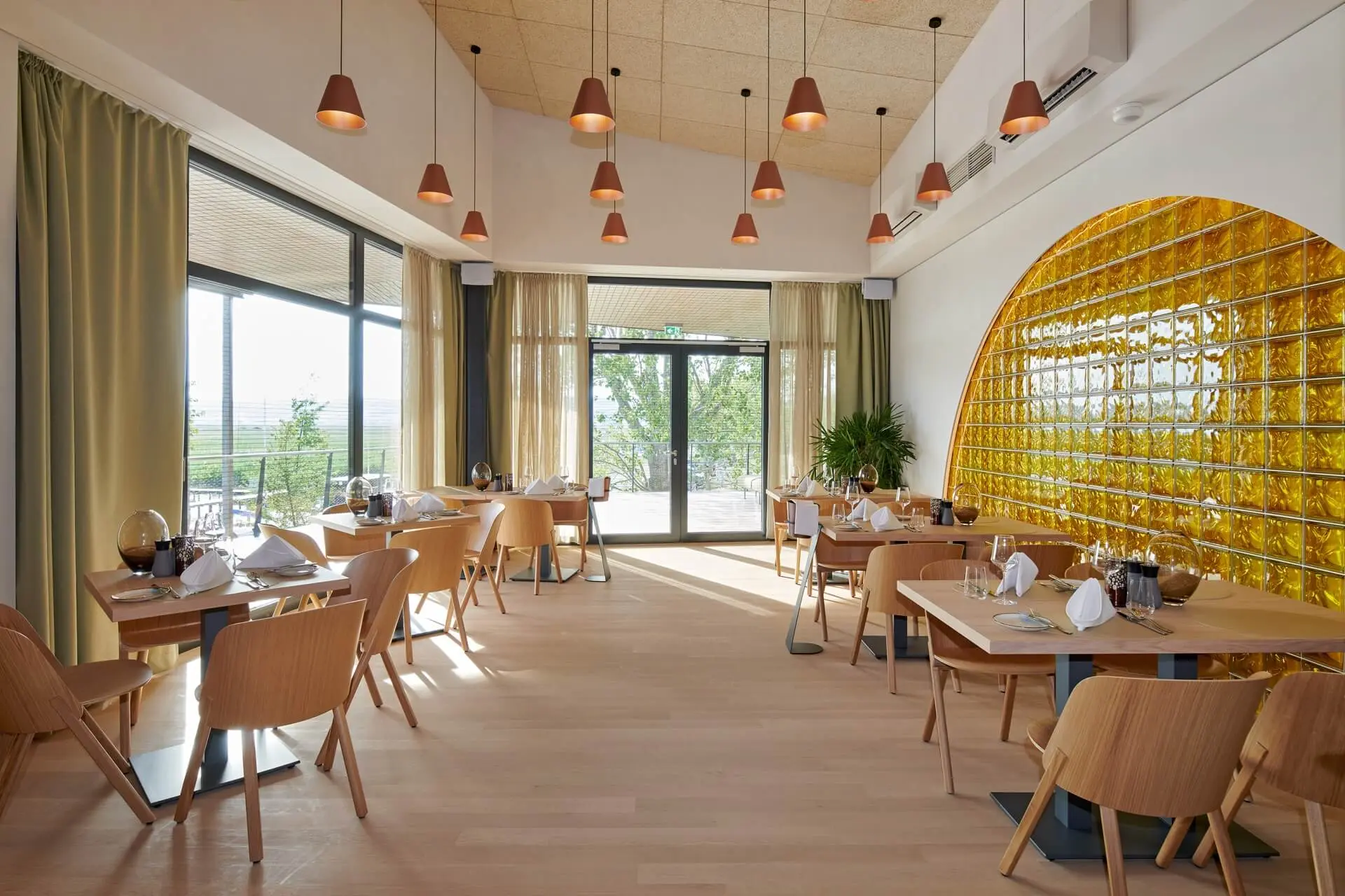 Das besonders elegant eingerichtete Restaurant Libelle bietet einen wunderschönen Rahmen für diverse Feste und Veranstaltungen mit bis zu 100 Gästen. Das Konzept der Naturverbundenheit spiegelt sich auch im Interieur wider, in dem viel mit Holz gearbeitet und die Farben in sanften Naturtönen gewählt wurden. Die großen Fensterfronten bieten eine schöne Verbindung nach Außen sowie einen weiten Blick auf den See und runden das stilvoll und doch gemütliche Gesamtbild ab.