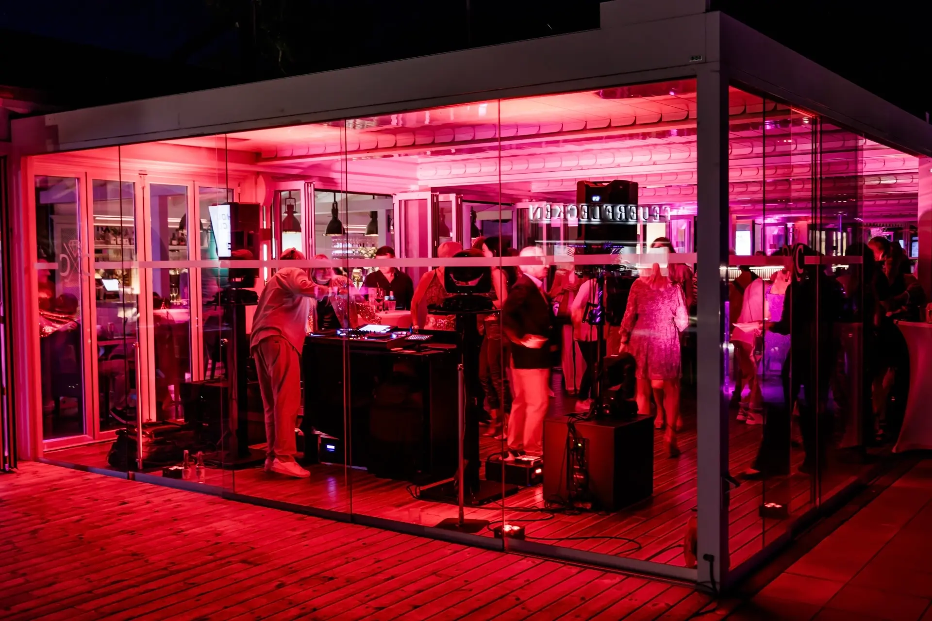 Die Location ist flexibel gestaltbar – ob gesetztes Dinner, Flying Buffet oder lockeres Get-together, das Boathouse bietet den idealen Rahmen für jedes Veranstaltungsformat. Besonders eindrucksvoll: der beleuchtete Wassersteg für Aperitifs oder stimmungsvolle Inszenierungen am Wasser.