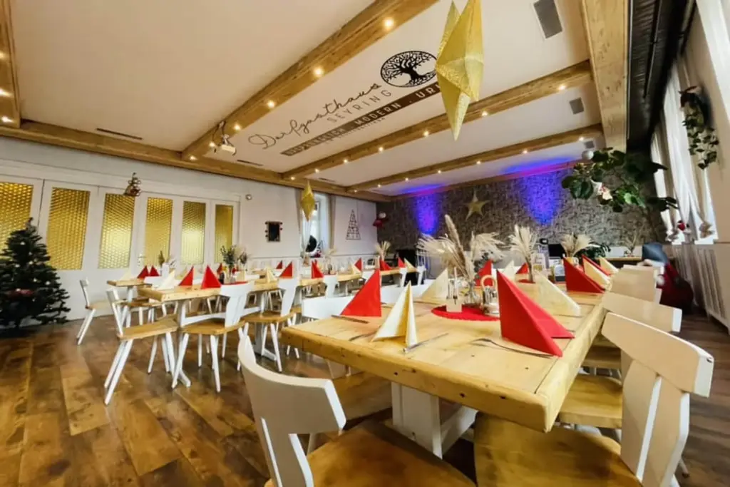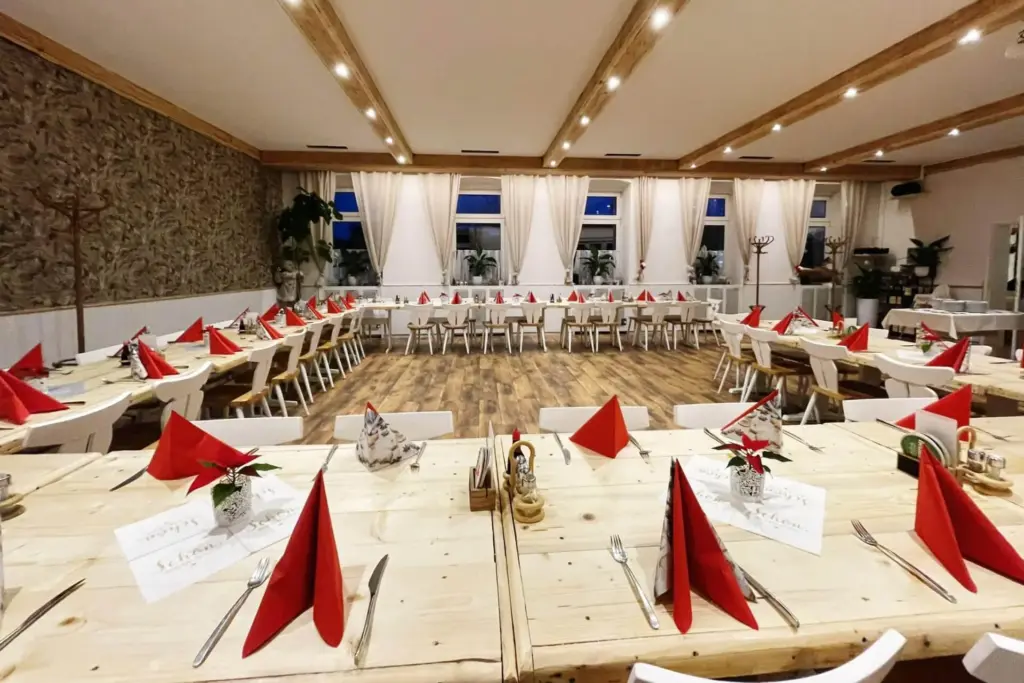 Mit bis zu 190 Gästen kannst du im Dorfgasthaus Seyring so gut wie jede Veranstaltung und Feier ausrichten und einwandfreien Service genießen. Sei es im charmanten Saal oder im idyllische Garten – dein Event wird ein voller Erfolg.