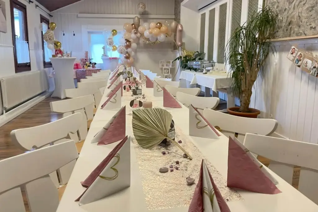 Wir haben auch unsere Babyparty dort veranstaltet, lief alles glatt, es wurde auf unsere Wünsche eingegangen und das war sicher nicht das letzte Mal, dass wir etwas dort gefeiert haben – 100% Weiterempfehlung! „