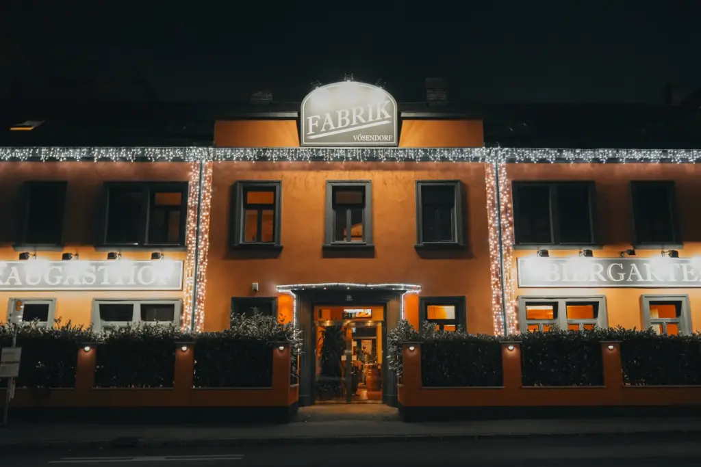 Die Fabrik Vösendorf ist ein modern gestalteter Gasthof in einem prächtig renovierten Backsteinbau einer ehemaligen Schnapsfabrik – hier wird an die Tradition der ehemaligen Austria-Brauerei angeknüpft. Sie bietet nicht nur eine gute Küche, sondern auch einen tollen Rahmen für deine Feste.