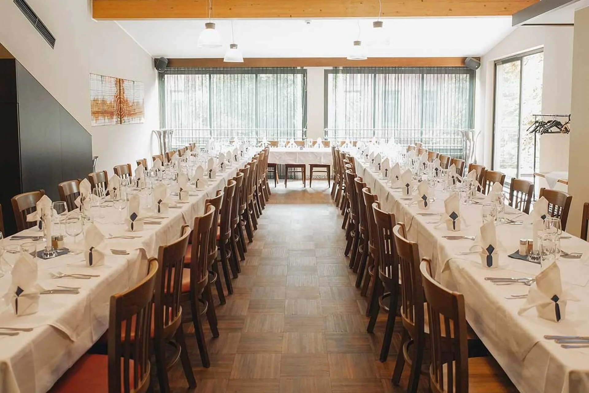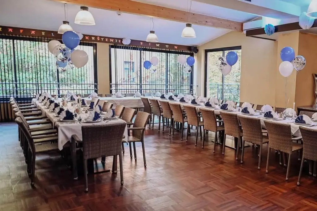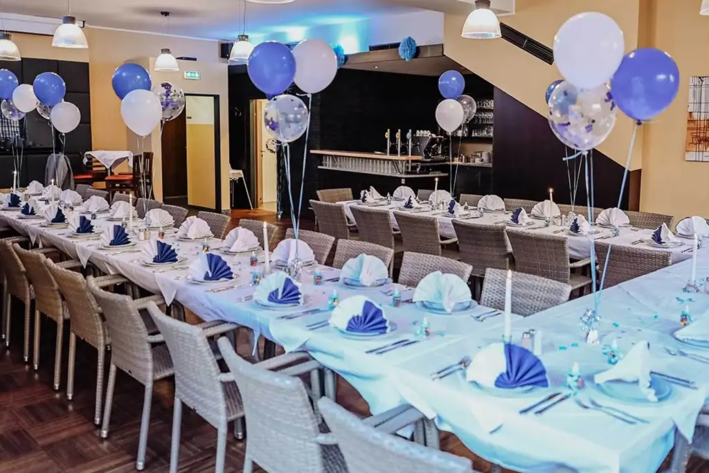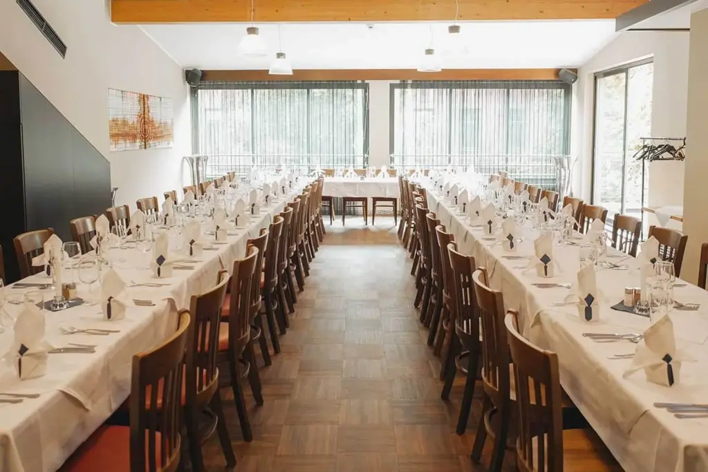 Für deine große Feier mit bis zu 160 Gästen steht ein eigener Festsaal zur Verfügung, für kleinere Veranstaltungen ist auch eine Raumteilung möglich. Exzellente Akustik und genügend Platz laden zum Tanzen ein – sie richten sich selbstverständlich nach deinen musikalischen Wünschen!