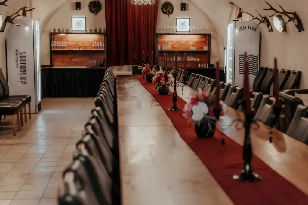 Der Saal im Kupferdachl eignet sich für jede Art von Anlass, ganz gleich ob formell wie Firmenevents und Weihnachtsfeiern oder lockere Feiern wie deinen Geburtstag, Familientreffen und Hochzeitsfeiern. Sein helles und stilvolles Flair bietet ein schönes Ambiente.