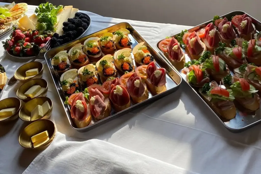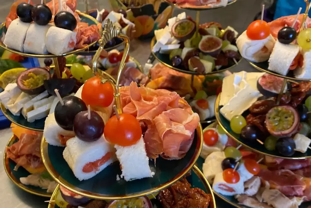 Das hauseigene Catering-Team vom Schlosscafé Vösendorf sorgt für kulinarische Highlights, vom stilvollen Buffet bis zu aufwendig gestalteten Canapés und süßen Köstlichkeiten. Die Speisen überzeugen durch Frische, Vielfalt und liebevolle Präsentation. Individuelle Wünsche werden gerne berücksichtigt.