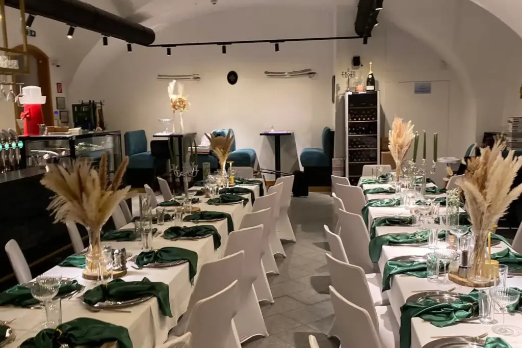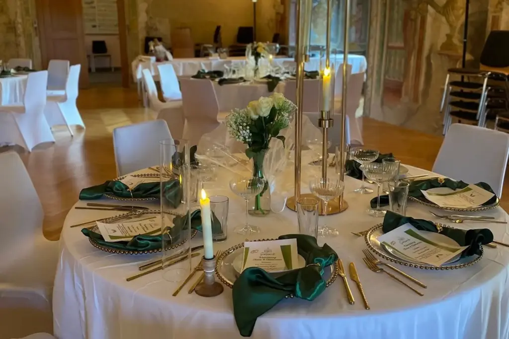 „Wir haben den Geburtstag meiner Mutter im Freskasaal gefeiert und hätten es uns nicht schöner vorstellen können! Die historische Kulisse war einfach traumhaft, das Team herzlich und aufmerksam, und das Buffet, ein Gedicht. Besonders die hausgemachten Törtchen haben alle begeistert. Ein Ort, den wir gerne weiterempfehlen.“