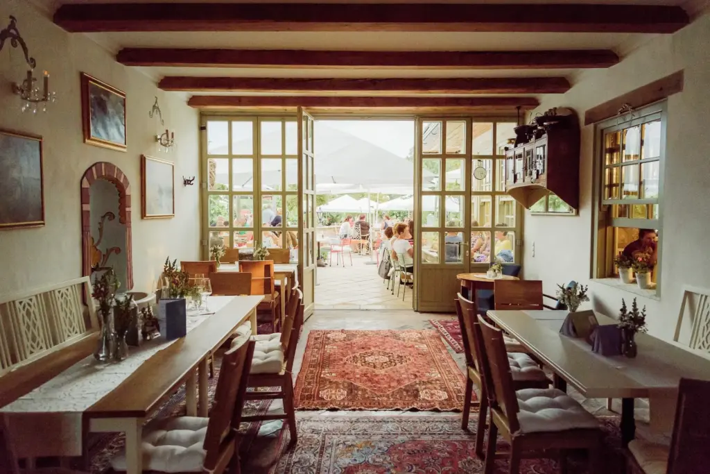 2006 begannen die beiden dann mit der Restaurierung ihres neu erworbenen Landhauses, wo sie die Eindrücke all ihrer Reisen in einem großen Traumhaus vereinen konnten. Mit diversen Flohmarktmöbeln, Reisesouvenirs und persönlichen Stücken vieler vorbeikommender Radfahrer, die den Bau über 5 Jahre lang verfolgten, entstand das „Wein&Gut – Weingut Rathbauer“. Es ist nicht nur ein Restaurant, sondern das zweite Zuhause von Rudi und Evi. Und dieses heimelige Gefühl begleitet einen angenehm durch jede Feierlichkeit.