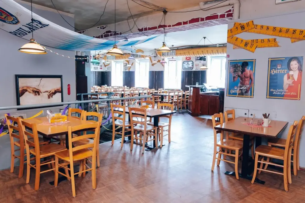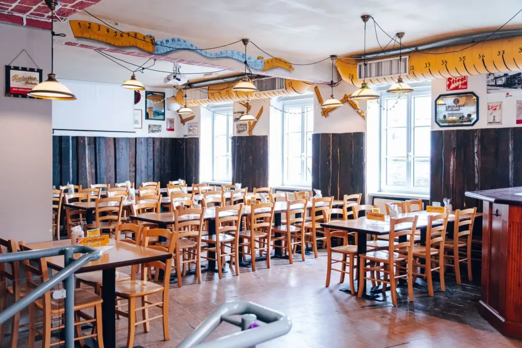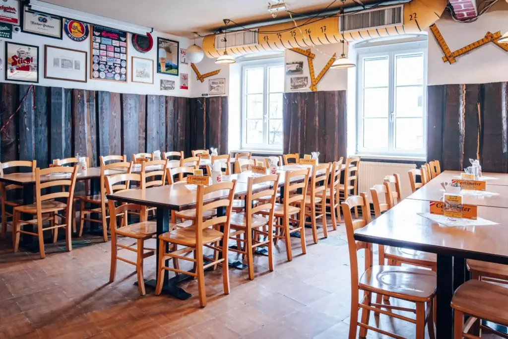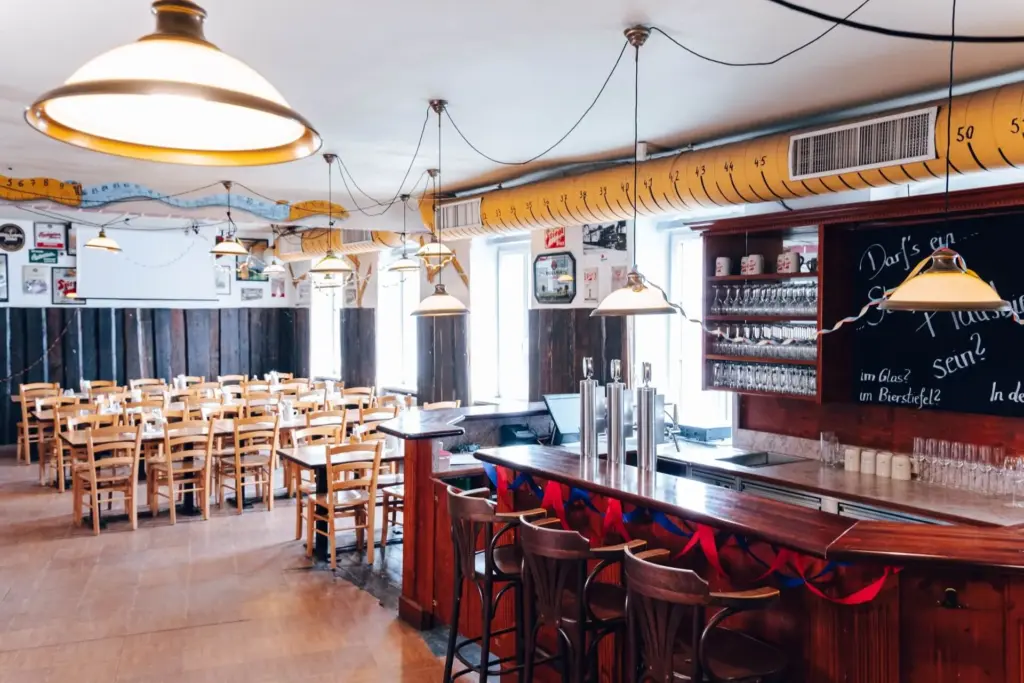 Jeder, der es deftig mag, wird hier mit einer Auswahl aus acht verschiedenen Biersorten vom Fass, einschließlich des bekannten Centimeter Hausbiers, sowie zahlreichen Gerichten aus österreichischer Hausmannskost voll auf seine Kosten kommen.