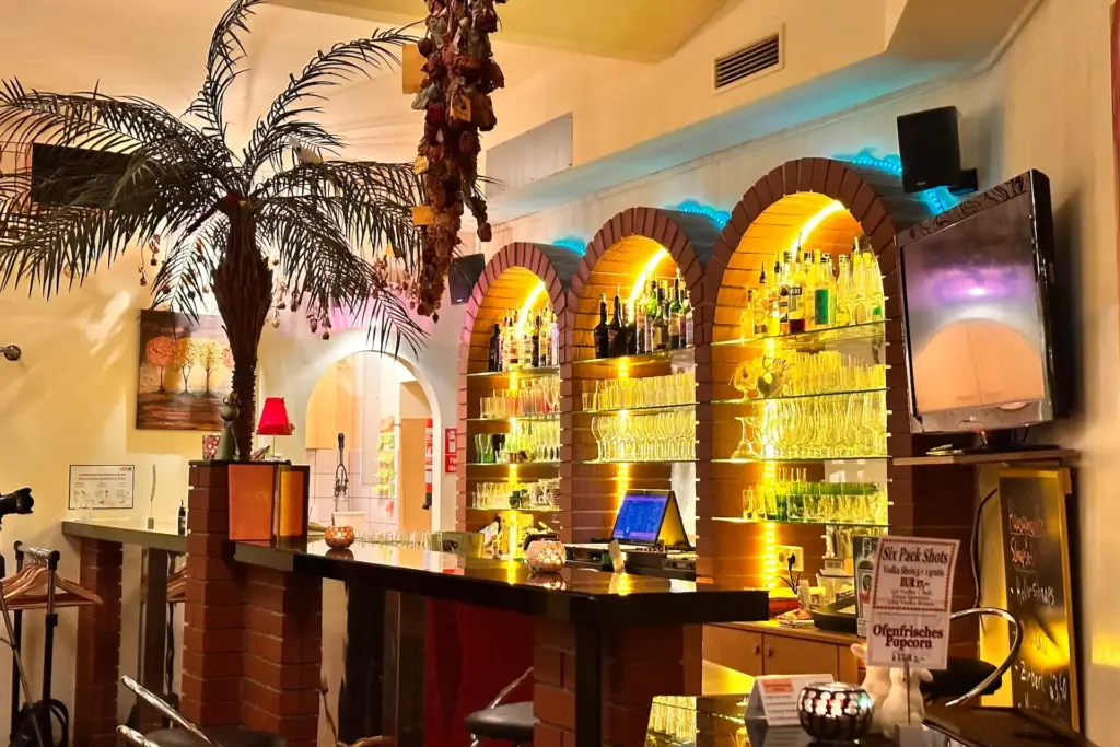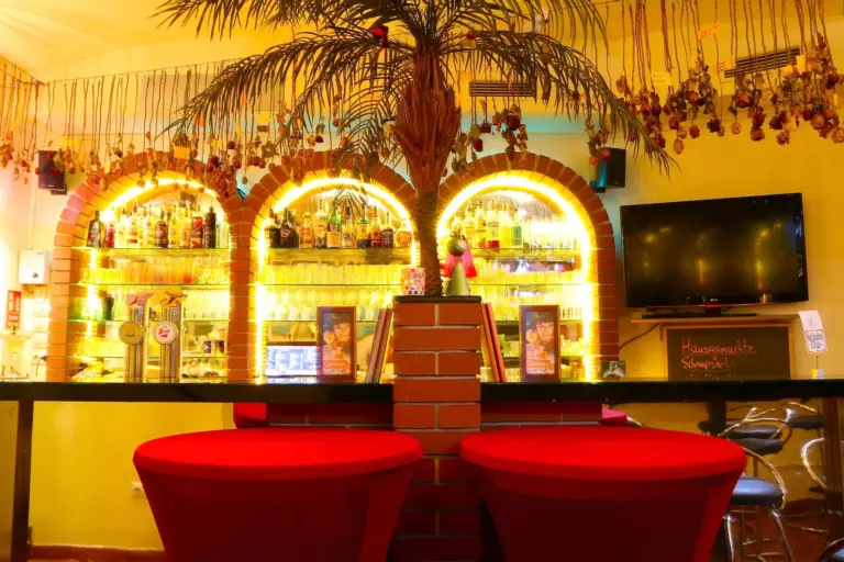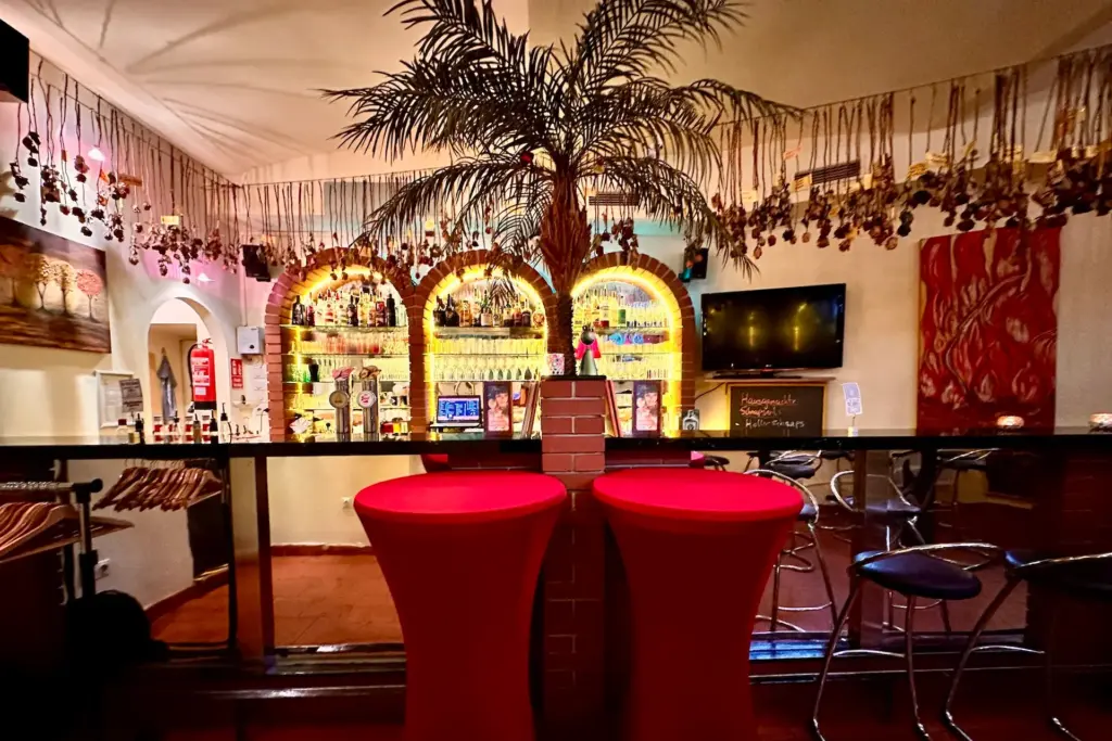 Die Location ist ein echter Blickfang und strahlt mit seinen Farben und individuellem Interieur Wärme und Leichtigkeit aus. Das Ambiente lädt sofort zum Entspannen und Wohlfühlen ein – die perfekte Basis für gute Partys! An der Bar wird eine breite Palette an Getränken, angefangen von Bier vom Fass, über leckere Cocktails, Longdrinks bis hin zu Weinen und natürlich alkoholfreien Getränken angeboten.