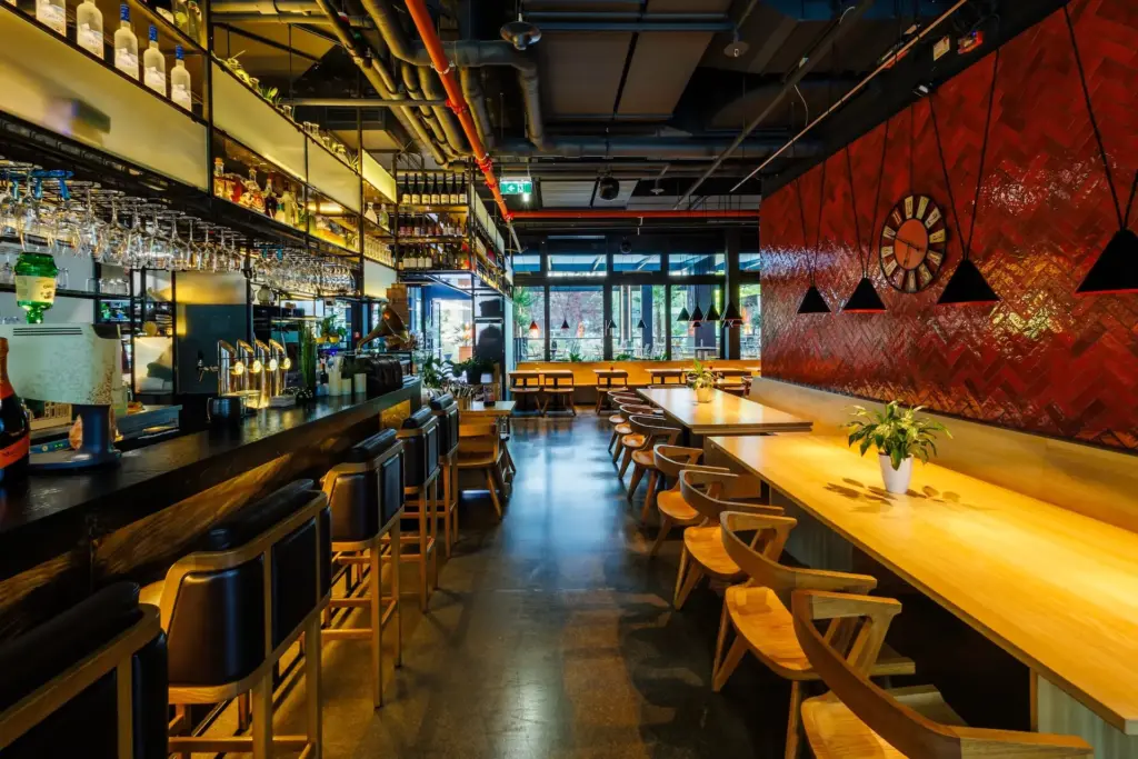Modern, offen und mit Wow-Faktor: Der Innenraum verbindet stilvolles Design, warme Holzakzente und eine eindrucksvolle Bar mit Showcharakter – perfekt für gesetzte Dinner, Business-Events oder Partys mit DJ.
