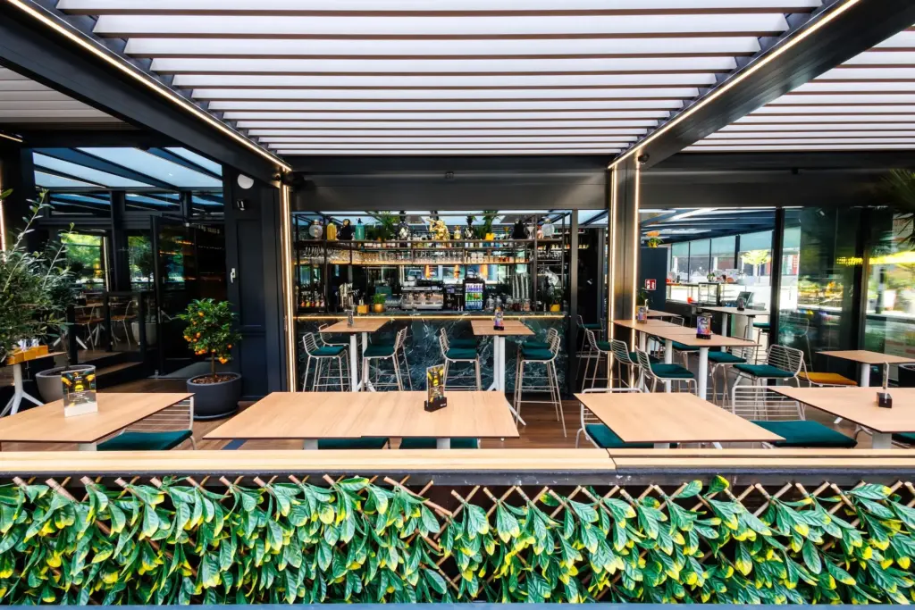 Überdacht, beheizbar und stilvoll begrünt – perfekt für wetterunabhängige Events im Freien. Ideal für Sommerfeste, Hochzeiten oder exklusive Cocktailabende.