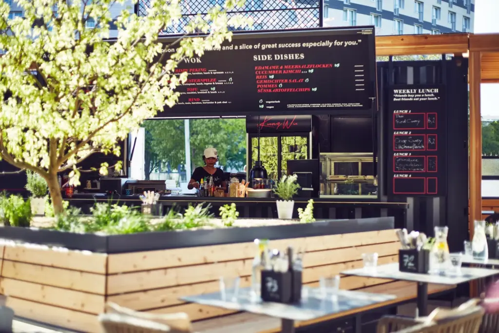 Zur Ausstattung gehören Beamer und Foodcontainer für dein individuelles Event-Setup. Die Location ist barrierefrei zugänglich.