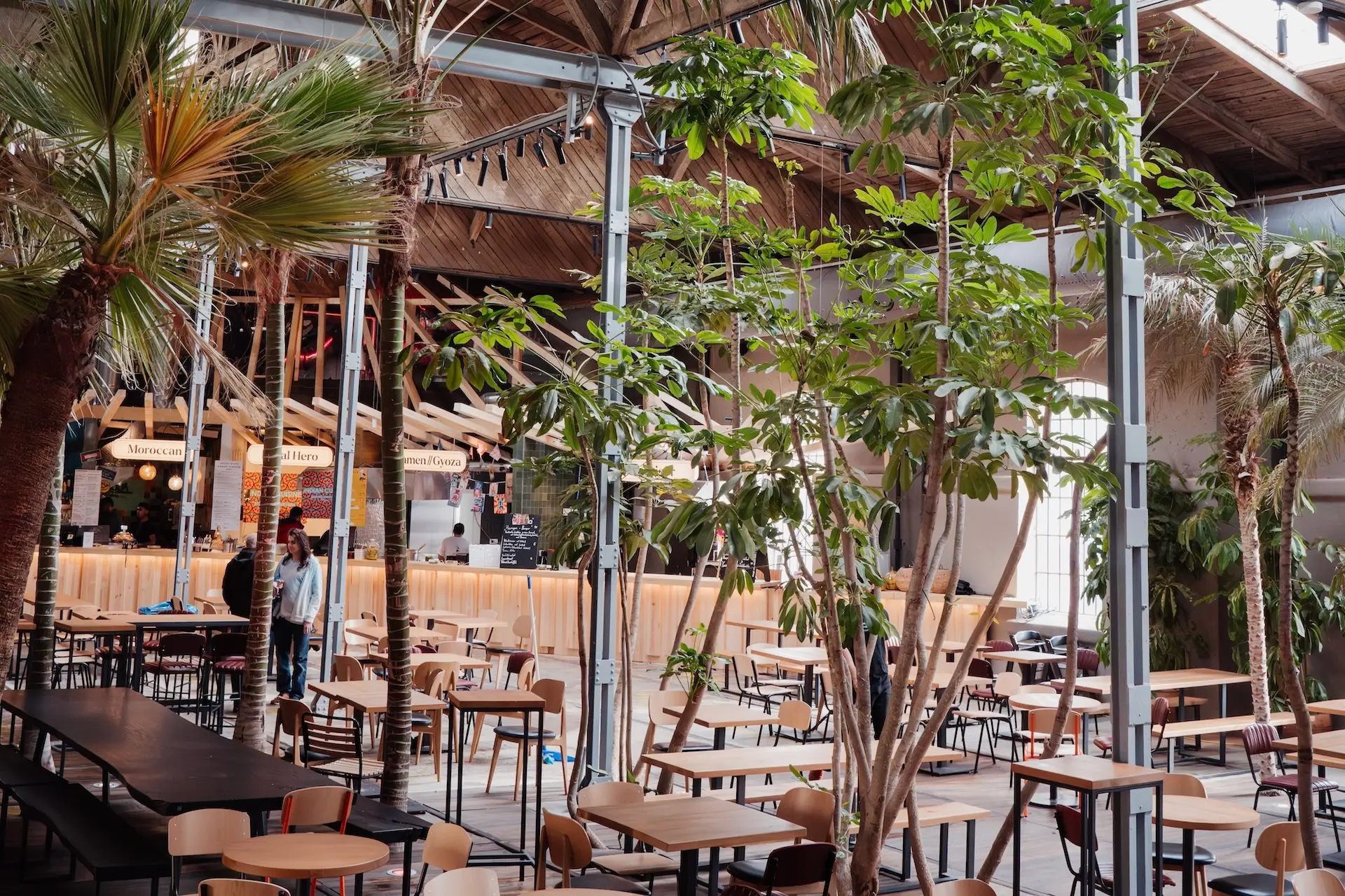 Der Gleis//Garten bietet auf einer beeindruckenden Gesamtfläche von rund 1.500 m² Platz für bis zu 650 Gäste – und das mitten in Wien. Die offene Architektur unter dem historischen Holzgebälk schafft ein einzigartiges Ambiente, das urbanes Industrieflair mit tropischem Pflanzenkonzept verbindet. Große Palmen, Olivenbäume und gemütliche Lounge-Elemente schaffen eine Atmosphäre, in der sich Gäste sofort wohlfühlen – ganz gleich, ob bei einem Sommerfest, einer Firmenfeier oder einem lockeren Get-together.