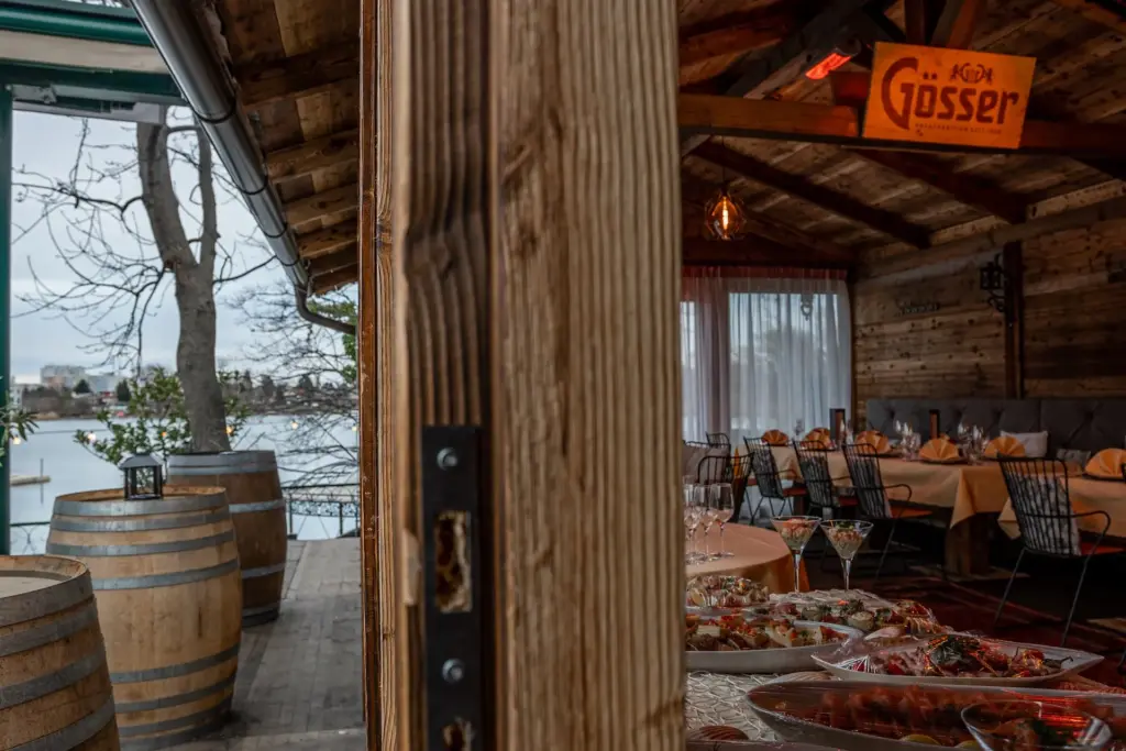 Gleich hinter der großen Terrasse des Restaurants „Zur alten Kaisermühle“ findest du die hübsche, aus Holz gebaute Gösserstube. Ganz im Stile der Kaisermühle trifft Tradition auf Moderne, dies schafft einen schönen Mix, welcher die perfekte Basis für jedes Event bildet und deine Gäste zum Verweilen einlädt. Mit einem spektakulären Blick auf das Wasser und die ruhige Idylle der alten Donau kannst du sicher jeden begeistern. Dazu kommt noch eine ausgezeichnete Küche sowie ein Service, der keine Wünsche offenlässt und euch kompetent durch das Event begleitet.