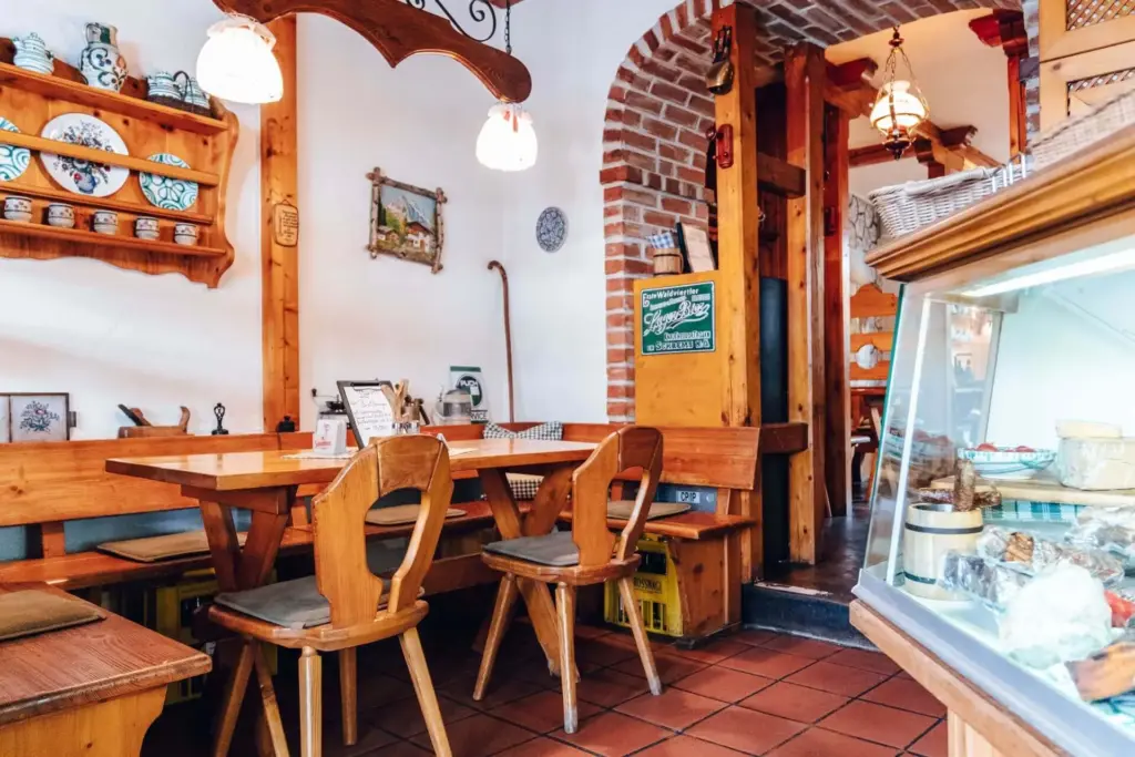Dieses rustikal eingerichtete Restaurant strahlt mit seinem Interieur aus Holz viel Wärme sowie Gemütlichkeit aus und besticht zudem mit einer ausgezeichneten Küche, die eine wahre Gaumenfreude ist. Von der Decke hängen urig schöne Lampen, von denen einige schon richtige Antiquitäten darstellen. Klassische Gmundner Keramik ziert die Regale und in der Vitrine stehen köstliche, hausgemachte Aufstriche und Süßspeisen. Die Location stellt 3 Räumlichkeiten und einen wunderschönen Gastgarten zur Verfügung, die du exklusiv für dein Event mieten kannst.