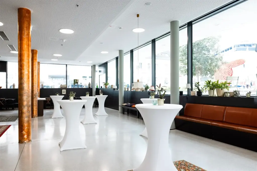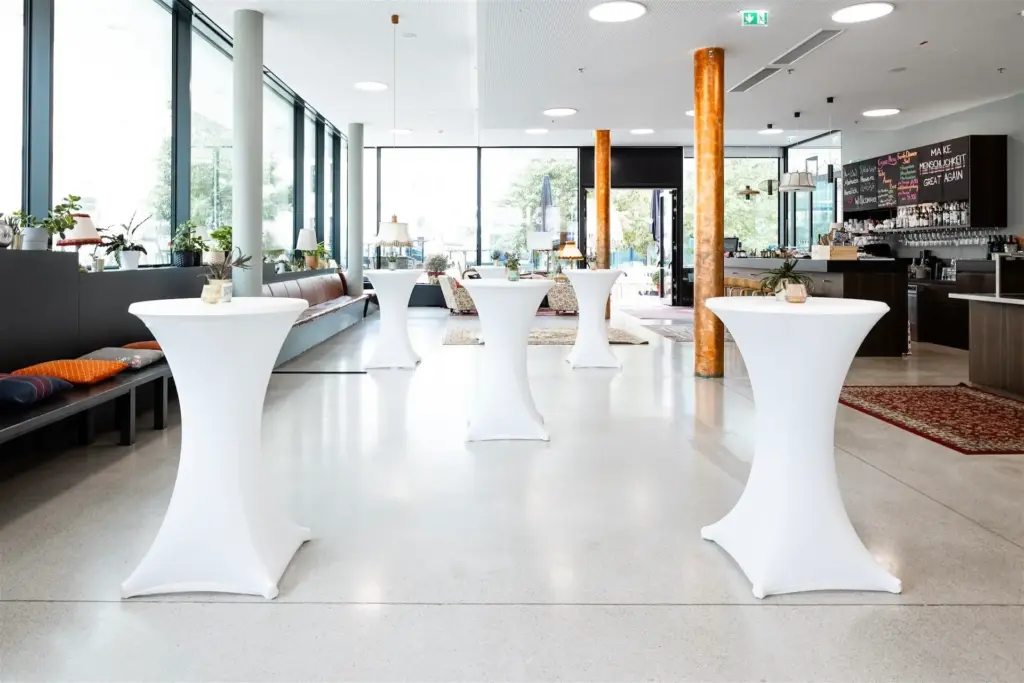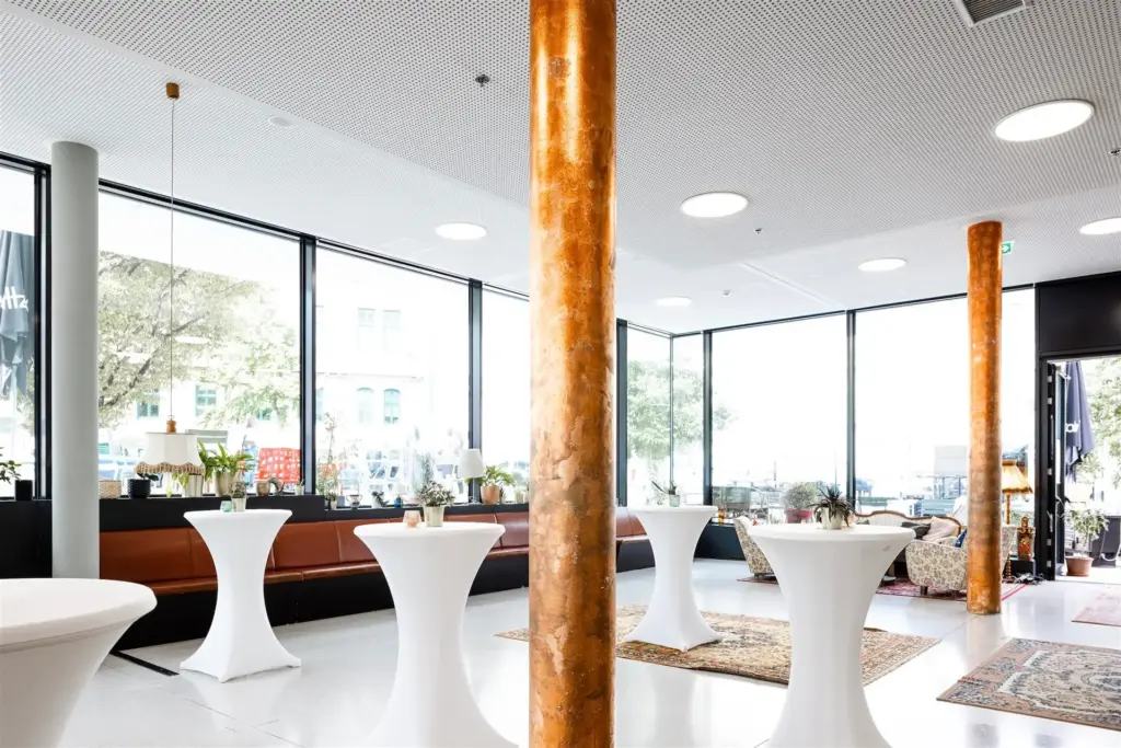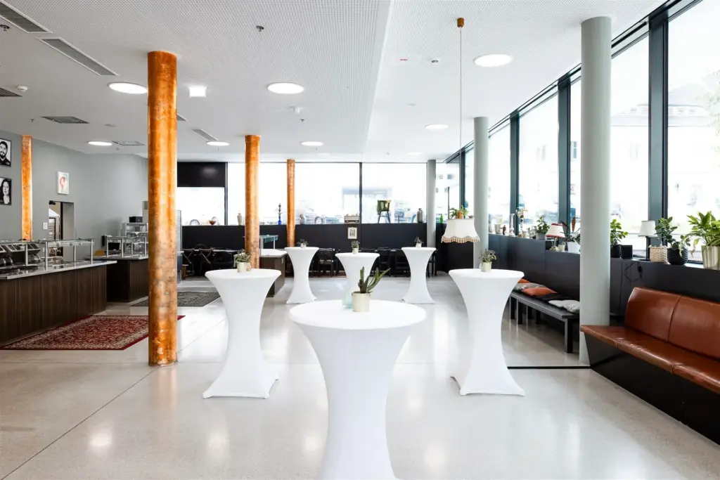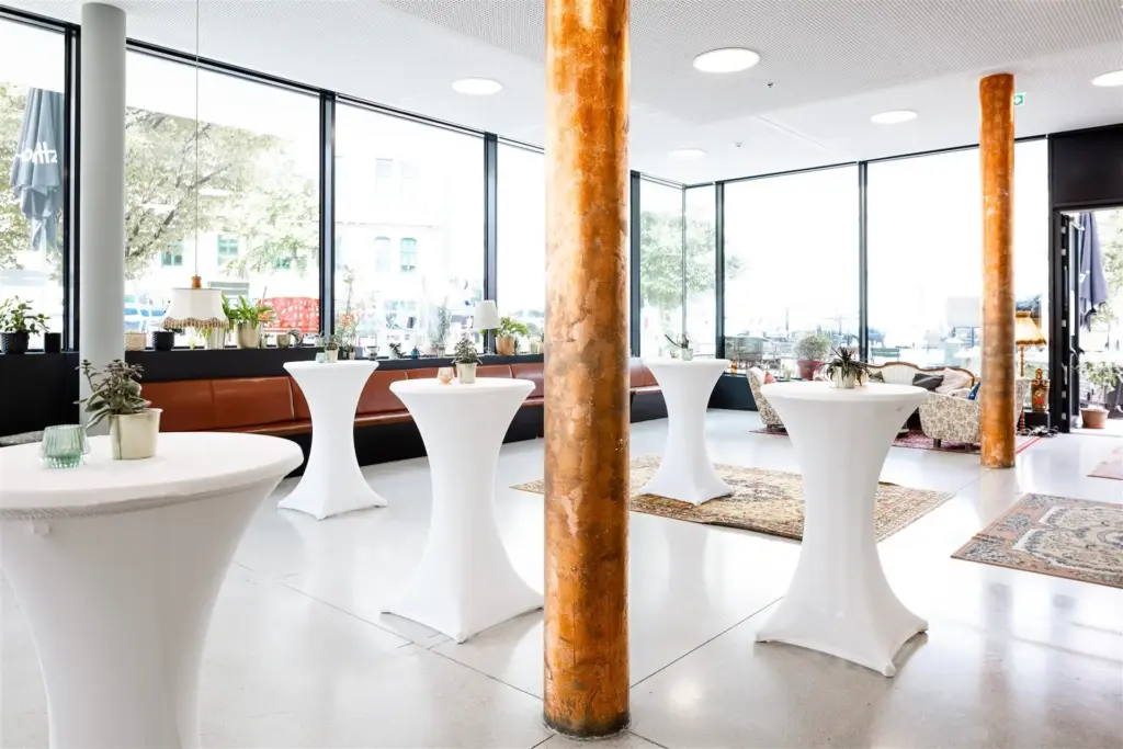 Ob gesetztes Dinner, lockeres Flying Buffet oder eine Veranstaltung mit Präsentations- oder Bühnenbereich, die Location kann individuell gestaltet werden. Dank der flexiblen Möblierung lassen sich unterschiedliche Set-ups realisieren, von Dinner-Bestuhlung über Stehtische bis hin zu Event- oder Partysettings.