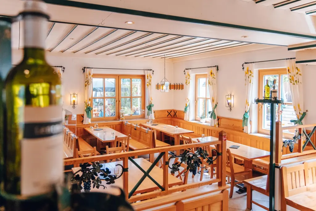 Die helle, freundliche Einrichtung im typischen Heurigen-Stil bildet die perfekte Kulisse für ein gemütliches Beisammensein und schöne Feiern. Je nach Anzahl der Gäste bieten sich verschiedene Räumlichkeiten, um deinem Event den perfekten Rahmen zu geben. Insgesamt finden in dem Heurigen bis zu 115 Personen Platz und gliedert sich in folgende Bereiche auf: