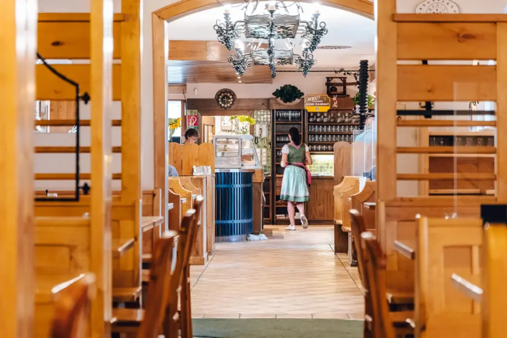 Das helle, schöne Extra Stüberl hat mit seinem Interieur ein offeneres Konzept und kann auf Wunsch auch umgestellt werden. Die mit Liebe zum Detail bearbeiten Deckenbalken sowie die hochwertige Wandvertäfelung verleihen dem Raum einen ganz besonderen Charme und laden zum Verweilen ein.
