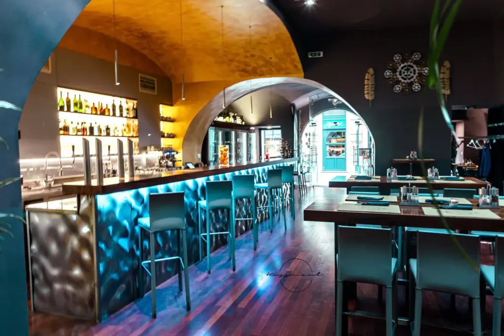 Das Restaurant mit stilvollem Design bietet Platz für bis zu 60 Personen, ideal für Feiern in gemütlicher Atmosphäre mit modernem Touch.