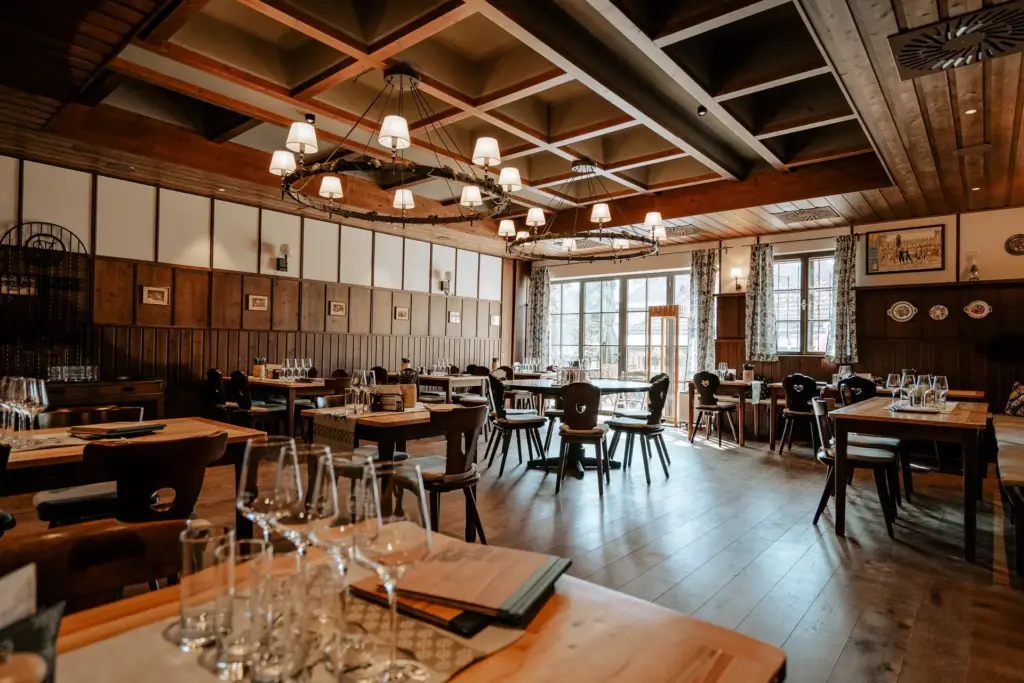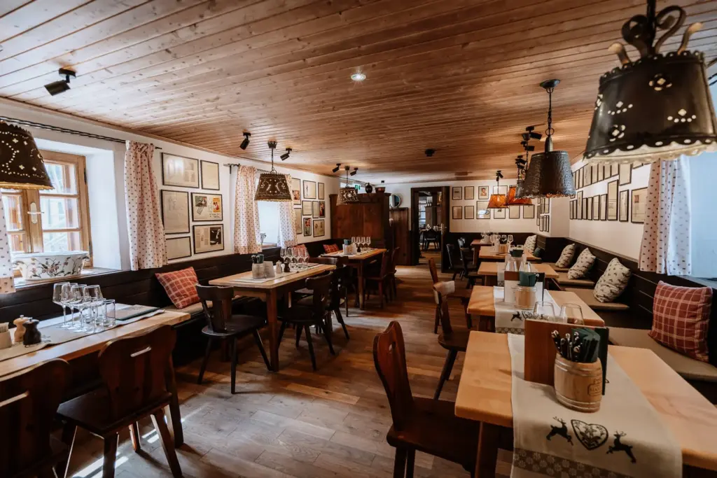 Heller Stubenraum mit liebevoll restaurierter Holzdecke – gemütlich, stilvoll und flexibel nutzbar.