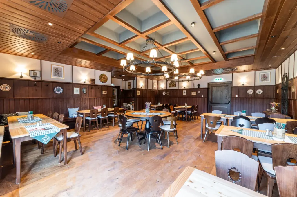 Großzügiger Raum für Hochzeiten, Firmen- oder Familienfeiern – mit direktem Zugang zum Buffetbereich.