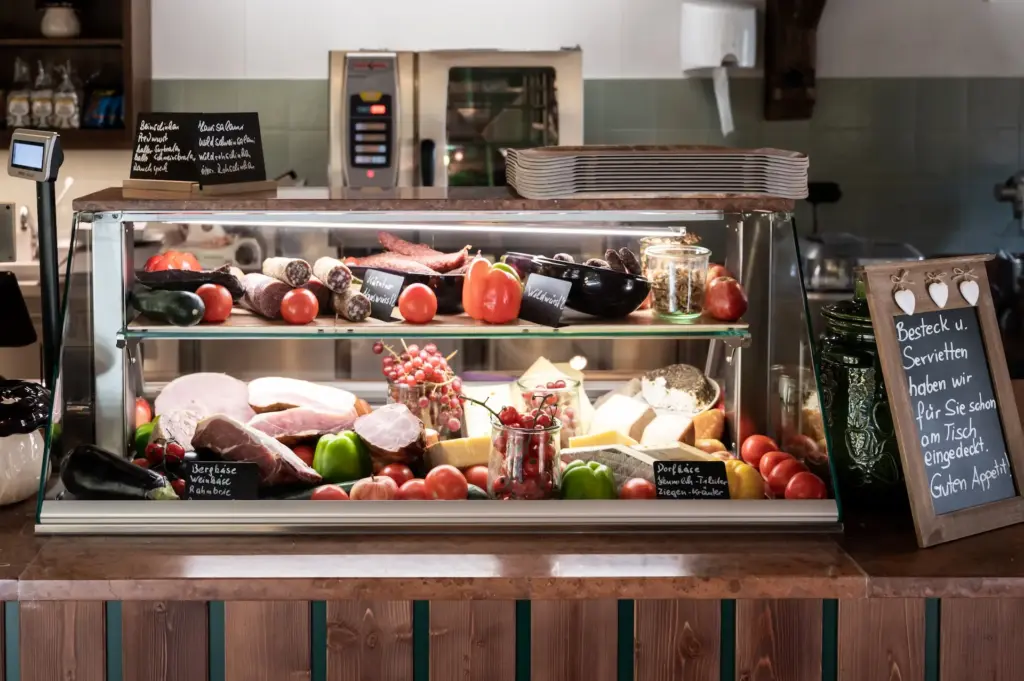 Als krönender Abschluss begeistert Mayer’s Käseplatte mit prämierten Käsesorten von österreichischen Bauern, hausgemachtem Traminergelee und ofenfrischem Gebäck.