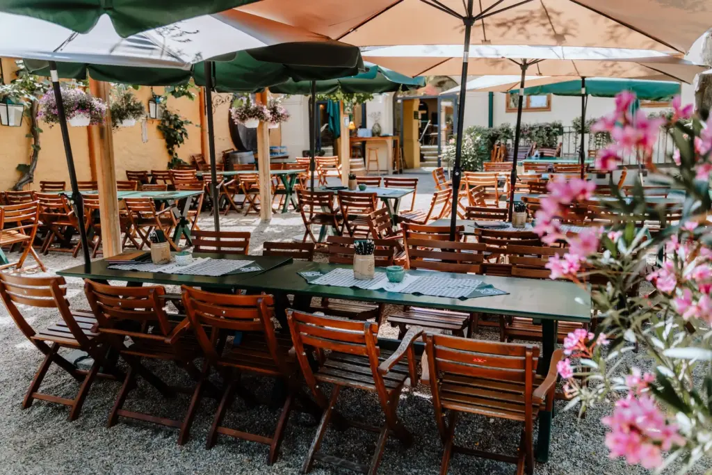 Der Heurige Mayer am Pfarrplatz liegt idyllisch im Herzen von Heiligenstadt im 19. Bezirk. Umgeben von Weinbergen, historischen Gebäuden und echter Wiener Atmosphäre. Trotz seiner ruhigen Lage ist die Location bequem erreichbar: Mit den öffentlichen Verkehrsmitteln gelangst du einfach über die U4-Station Heiligenstadt, von dort sind es nur wenige Minuten mit dem Bus 38A direkt zum Pfarrplatz.