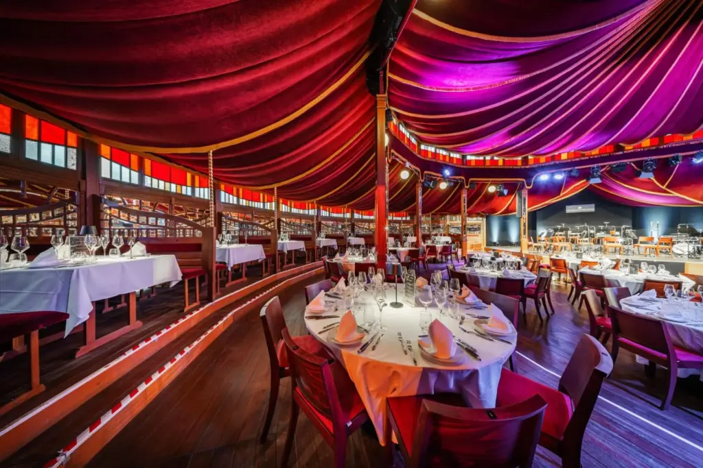 Die Mindestanzahl variiert je nach Veranstaltungsformat. Für Menüs und Dinner-Shows liegt sie in der Regel bei 100–150 Personen.