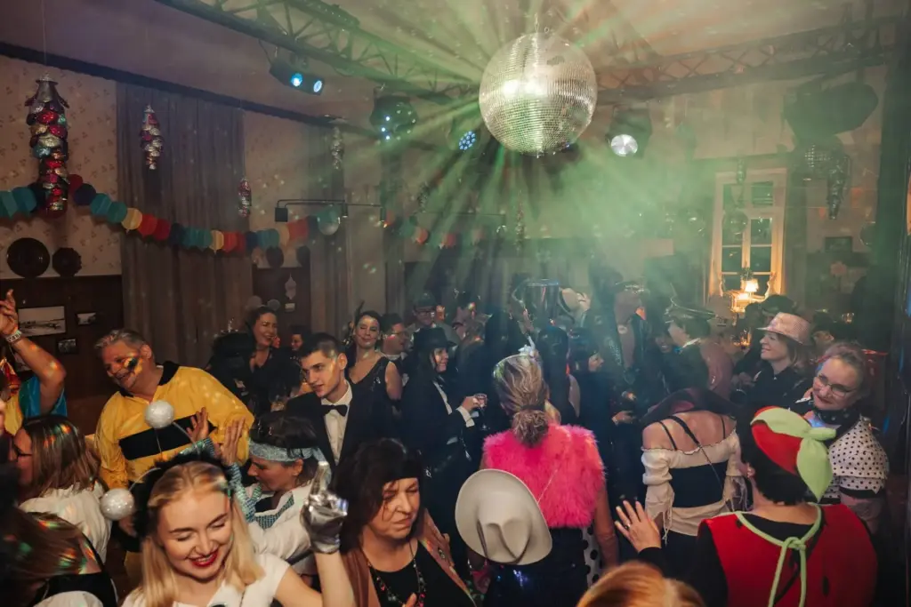 Wer groß feiert, braucht dafür auch viel Platz. Mit einem Tanzboden „wie früher“, Diskokugel, Musik- und Lichtanlage, einer Nebelmaschine sowie einer eigenen großen Schank ist Party-Stimmung vorprogrammiert. Vor dem Feiern eignet sich der Saal natürlich auch für die Verköstigung mit einem umfangreichen Buffet oder einem gewählten Menü. Auch exklusiv erweiterbar um das ganze Obergeschoss für bis zu 200 Personen.