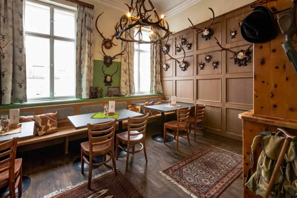 Urig, gemütlich und mit historischen Jagdtrophäen und Jagdluster aus der Kaiserzeit. Für die kleine Familienfeier, den Stammtisch, die Trauerfeier oder die Bier- und Kartenrunde. Du musst aber nicht Bauernschnapsen und Tarockieren können, um sich hier wohlzufühlen.