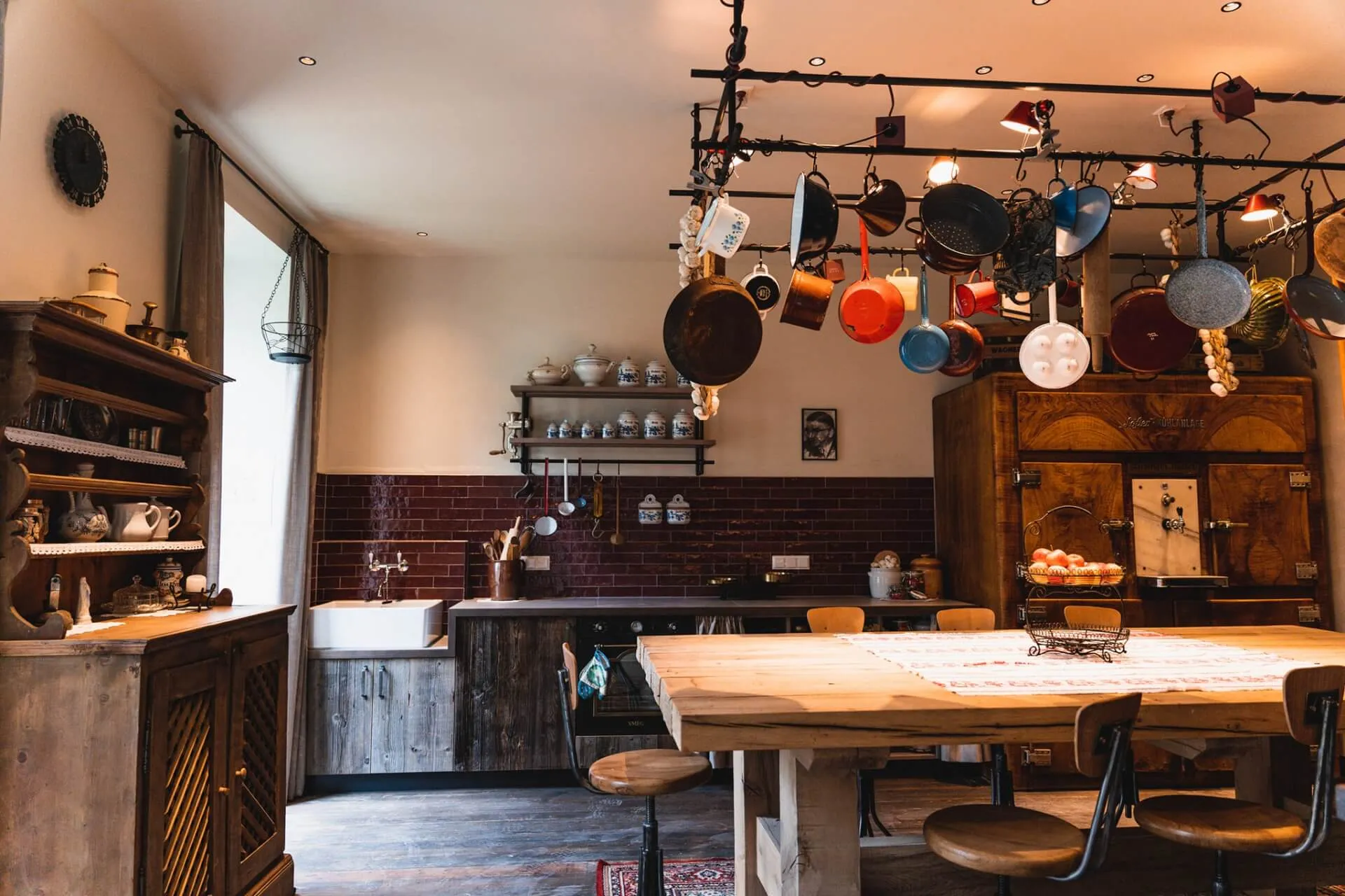 Omas Küchentisch im Erdgeschoss ist ein ganz besonderer Raum in unserem Gasthaus, an dem die ganze Familie zusammenkommt. Ein eigener Backofen, Herdplatten, Waschbecken und ein großer Tisch laden zum gemütlichen Kochen, Backen und Beisammensein ein.