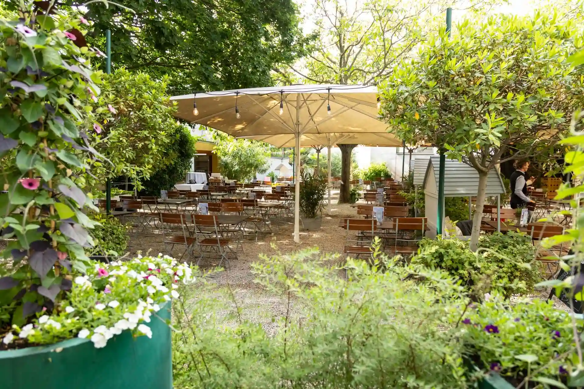 Schattige Kastanienbäume, Kräuter und Grün soweit das Auge reicht, ein schwindelfreies Baumhaus und die ein oder andere Blume aus dem Gemeindebau: Den wohl schönsten Gastgarten Kagrans mit Platz für bis zu 400 Personen finden Sie bei uns im Napoleon. Hier ist Platz für Familienfeste, Trauerfeiern, die gemütliche Mädls-Runde, oder auch die ausgelassene Feier mit den Vereinskollegen bei Gulasch, Schnitzerl und einem kühlen Bier. Highlight ist der Napoleon Kirtag im September – nicht verpassen! Im hinteren Teil befindet sich ein Spielplatz für Kinder mit Spielhaus. Er wurde nicht umsonst zum schönsten Schanigarten Wiens gewählt (Goldener Schani 2024).