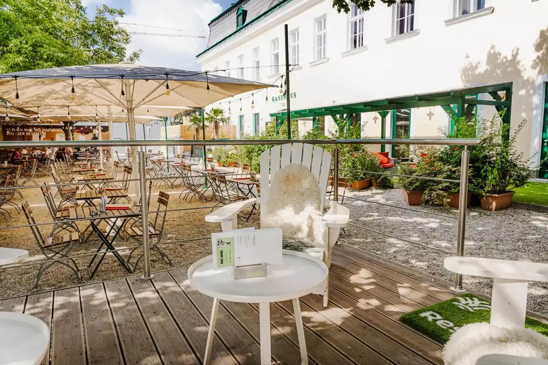 „Wunderschönes Bierlokal. Super Design, das das altehrwürdige Haus mit modernen Stilelementen kombiniert. Schöner, schattiger Garten. Gemütliche Wirtshausatmosphäre drinnen. Im ersten Stock … Partylocation!!!“