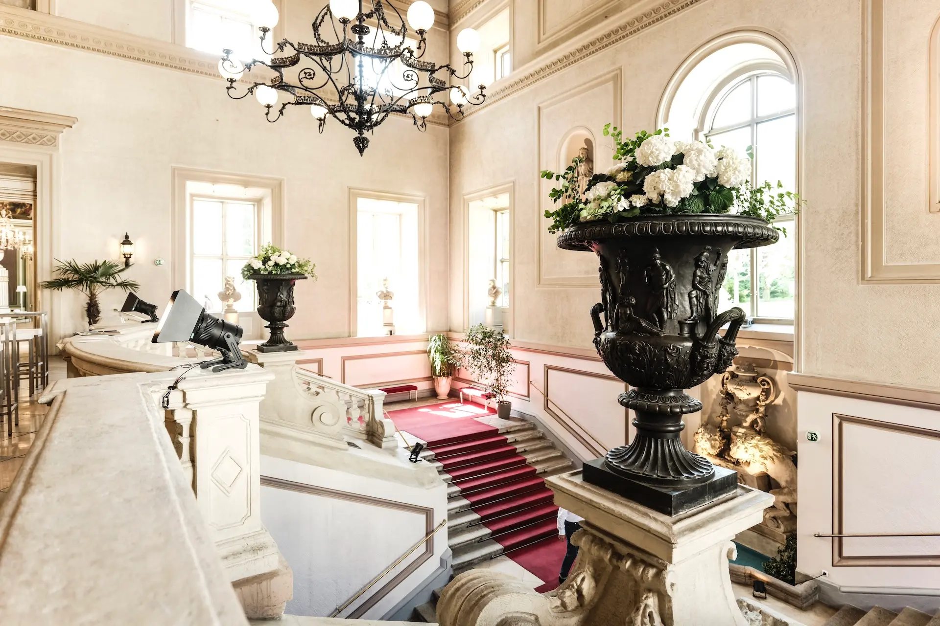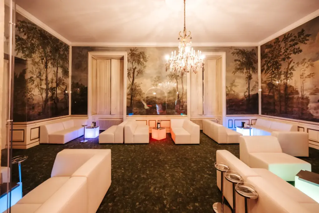 Technik & Ausstattung: Moderne Licht- und Tontechnik, Stromanschlüsse bis 32A, beheizbar und klimatisiert, direkte Nutzung des Palais Parks möglich, flexible Möblierung und Dekorationsmöglichkeiten