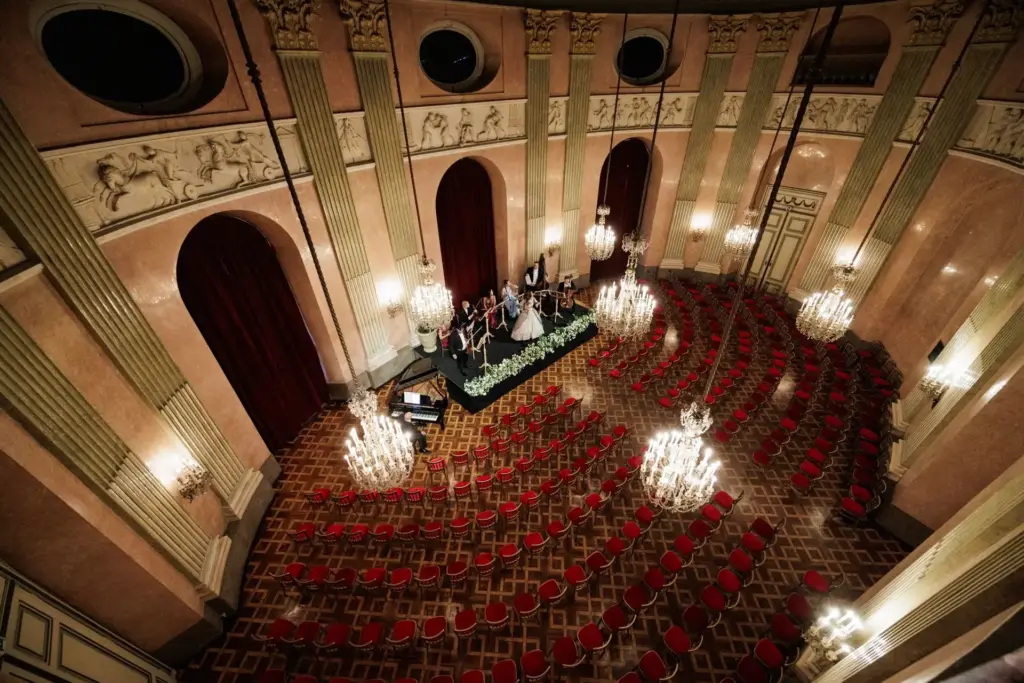 „Unsere Hochzeit im Palais Auersperg war einfach magisch! Der Rosenkavalier-Saal war wie aus einem Märchen, das Dinner ein kulinarisches Highlight und der Service professionell bis ins Detail. Besonders schön war der Empfang im Garten, ein perfekter Start in unseren großen Tag. Danke an das gesamte Team für dieses unvergessliche Erlebnis!“