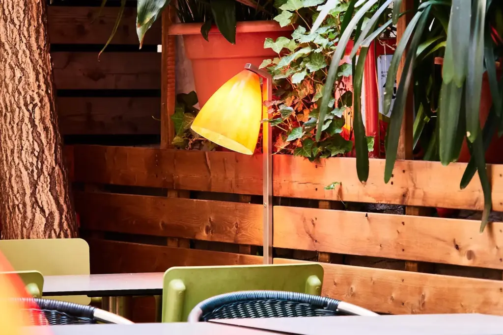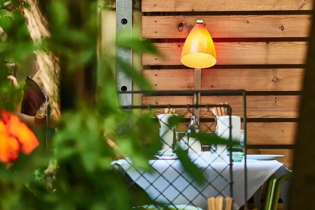 Überdacht & charmant, bietet auch bei Regen einen stimmungsvollen Rahmen für kleine Gruppen.