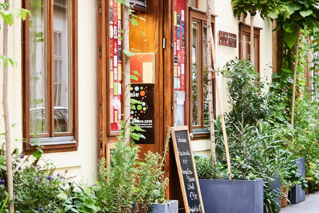 Urbanes Interior mit lockerer Wohlfühl-Stimmung und kreativer Atmosphäre, ideal für Gruppenessen, Feiern oder gesetzte Dinner.