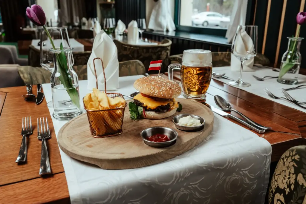 Die Hauptspeisen sind unter anderem Wiener Tafelspitz, Melanzani aus dem Ofen, Ricottaravioli, Schnitzel, Grillspezialitäten, saftige Burger und Fisch.
