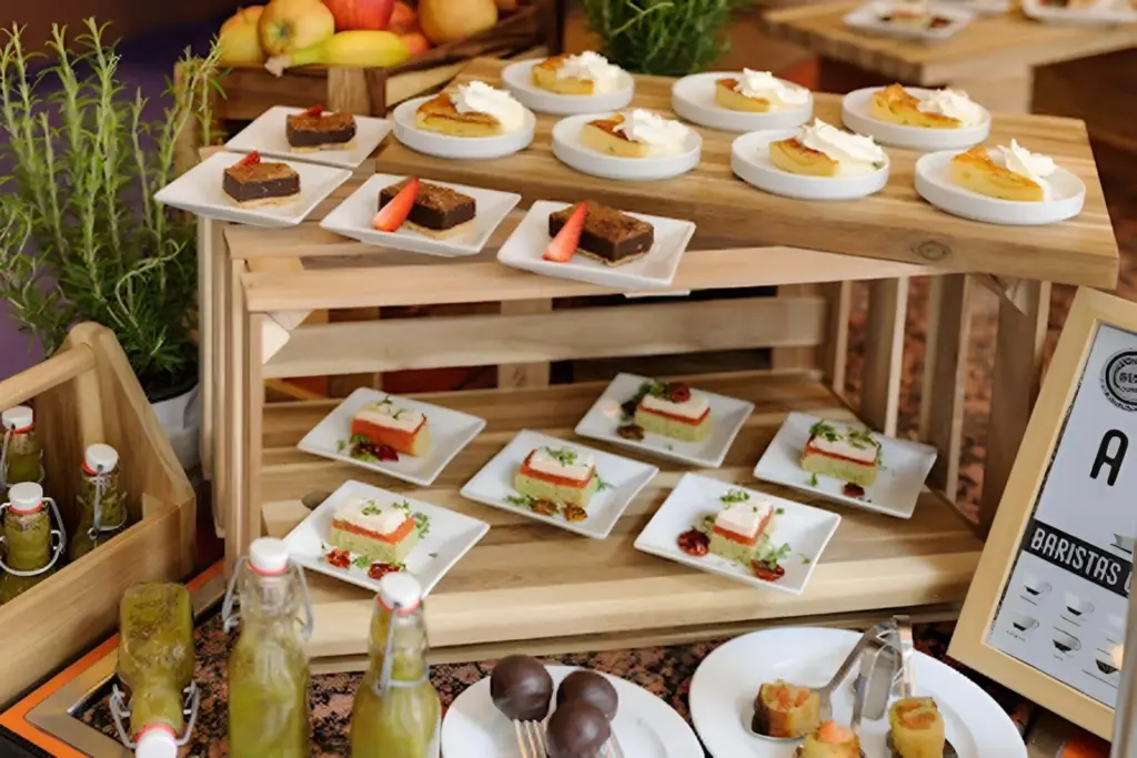 Wenn du ein Buffet möchtest, ist der Gestaltung davon kaum Grenzen gesetzt. Ganz gleich, ob du eine schlichte Speisenfolge oder ausgefallene Spezialbuffets bevorzugst – das Küchenteam von Roter Salon stellt dir gern ein Angebot zusammen, welches zu dir und deinem Event passt. Zudem können sie dir auch ein Themenbuffet zusammenstellen.