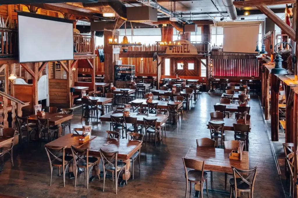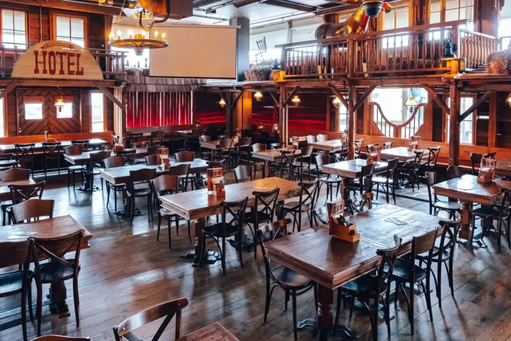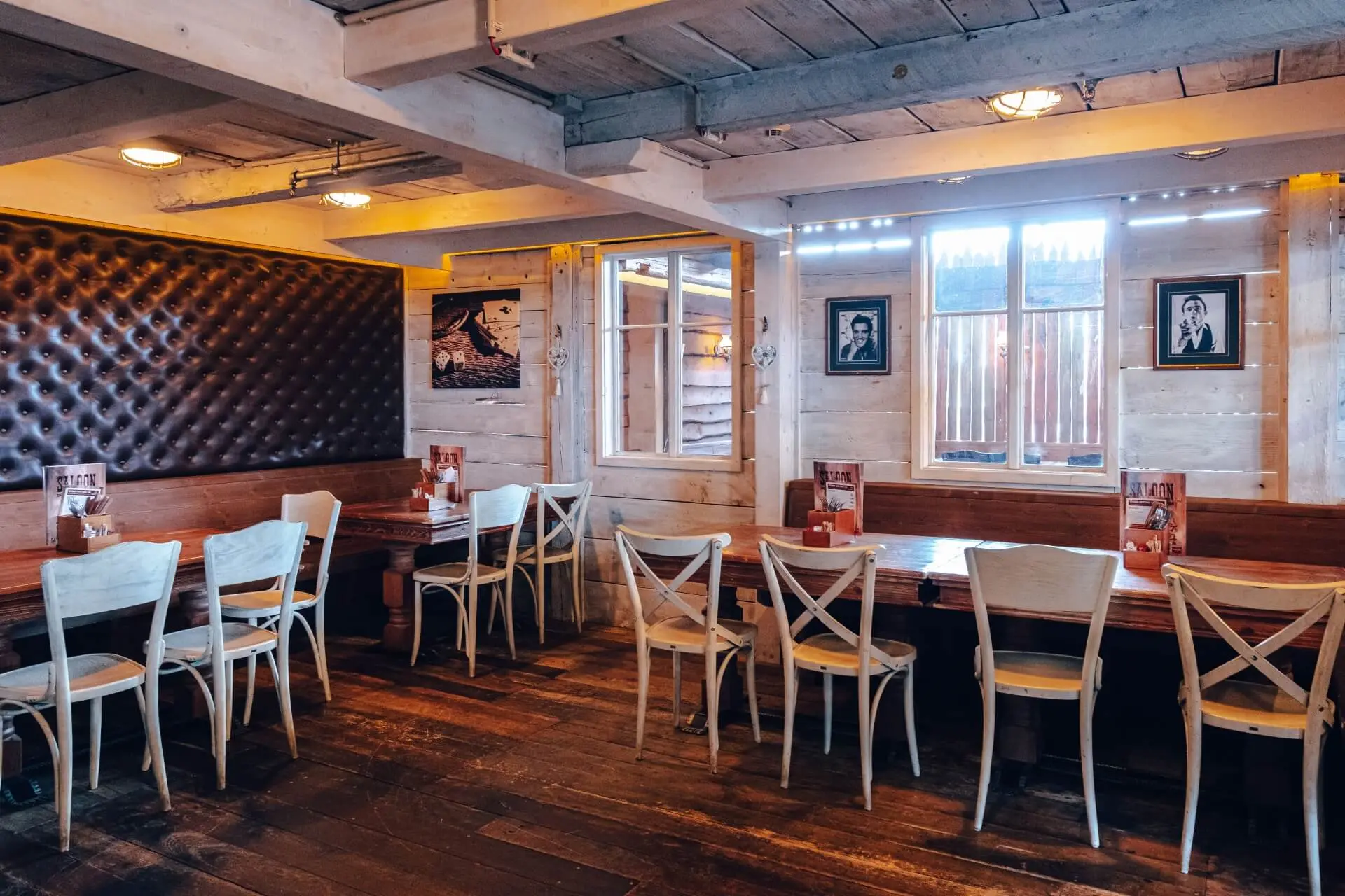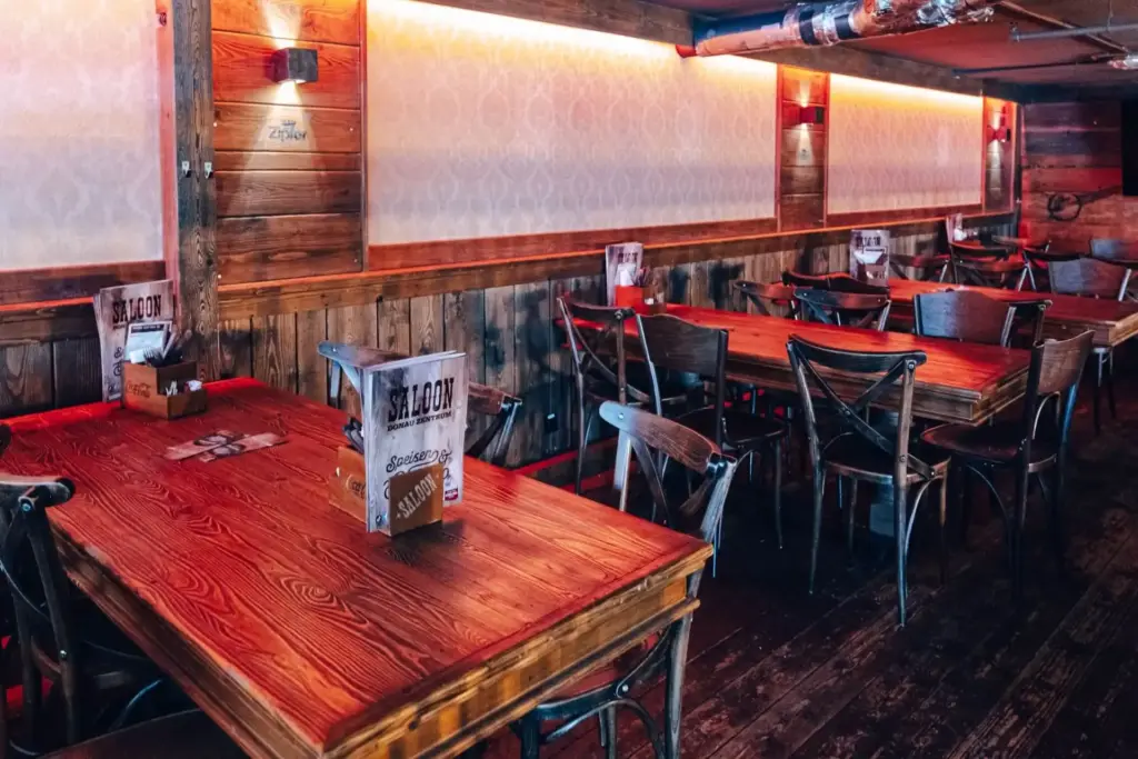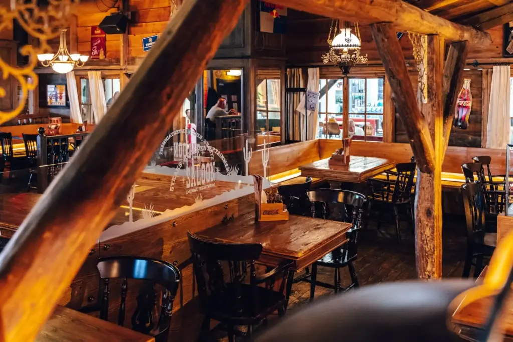 Möchtest du mal eine etwas andere Feier- im rustikalen Western Style? Dann bist du hier im Saloon Donau Zentrum genau richtig! Die urig gemütliche Einrichtung, ganz im Stile des alten Westens, mit viel Holz und netten Western Details, bildet einen schönen Rahmen für eine Feier ganz anderer Art. Die deftige Küche mit üppigen Portionen ist ein Traum für jeden, der echtes Soulfood liebt. Sei es saftige Burger, Ribs, Steaks oder andere klassische amerikanischen Leckereien. Hier wird jeder von dem erstklassigen Essen begeistert sein. Für die Bierliebhaber unter den Gästen ist die außergewöhnliche Karte ein wahrer Genuss.