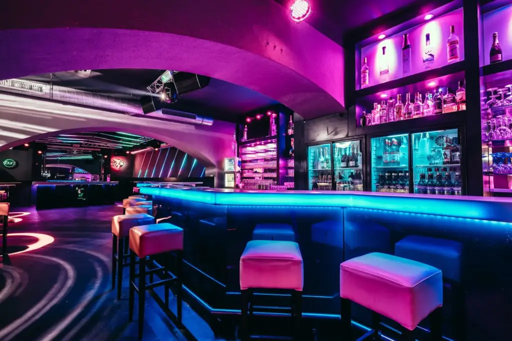 Die coole, moderne Location bietet den perfekten Rahmen für eine lockere Feier, bei der Partyspaß im Vordergrund steht. Bunte Lichtanlagen, dunkle Farben und gemütliches Bardesign sorgen für ein angenehmes Wohlfühlambiente. Veranstalte deine nächste Feier in der Salzbar und genieße einen gelungenen Abend mit deinen Gästen, begleitet vom besten Service und einer tollen Stimmung.