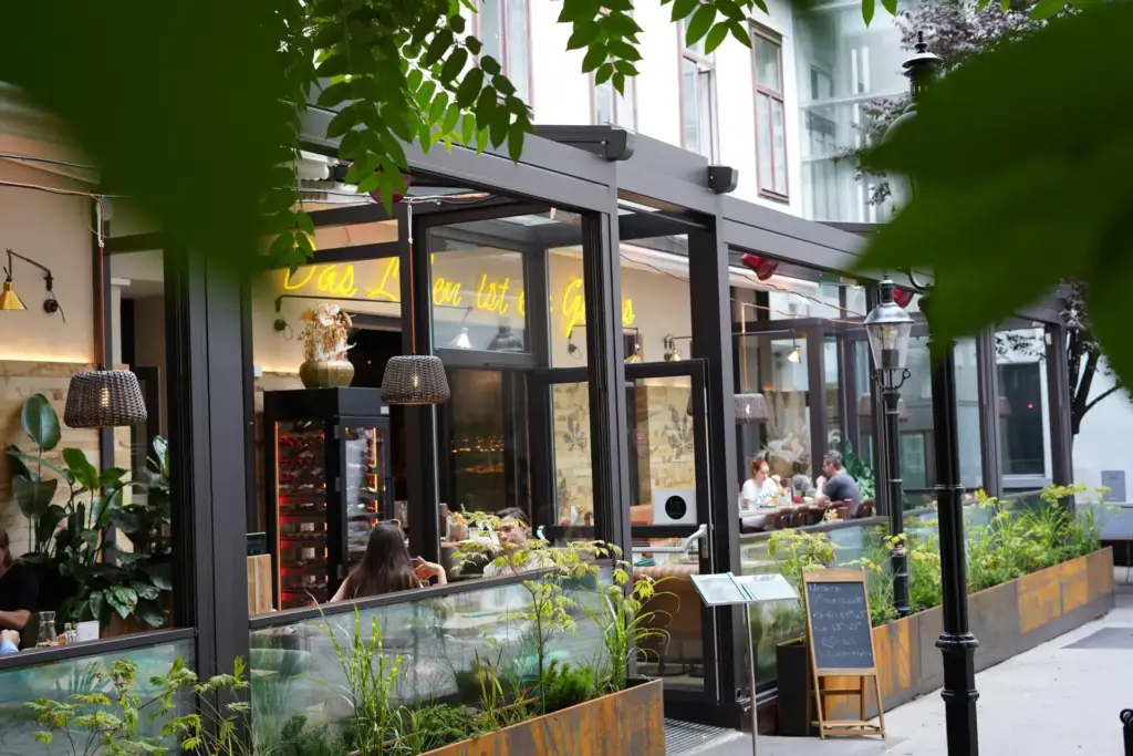 „Wahnsinn kann ich nur sagen. Man sitzt eigentlich mitten in Wien und trotzdem ist es ruhig,chillig und sehr geschmackvolle. Die Bedienung ist sehr nett und aufmerksam, das Essen ist ein Traum und der Gast ist quasi König. Eine absolute Empfehlungen!!“