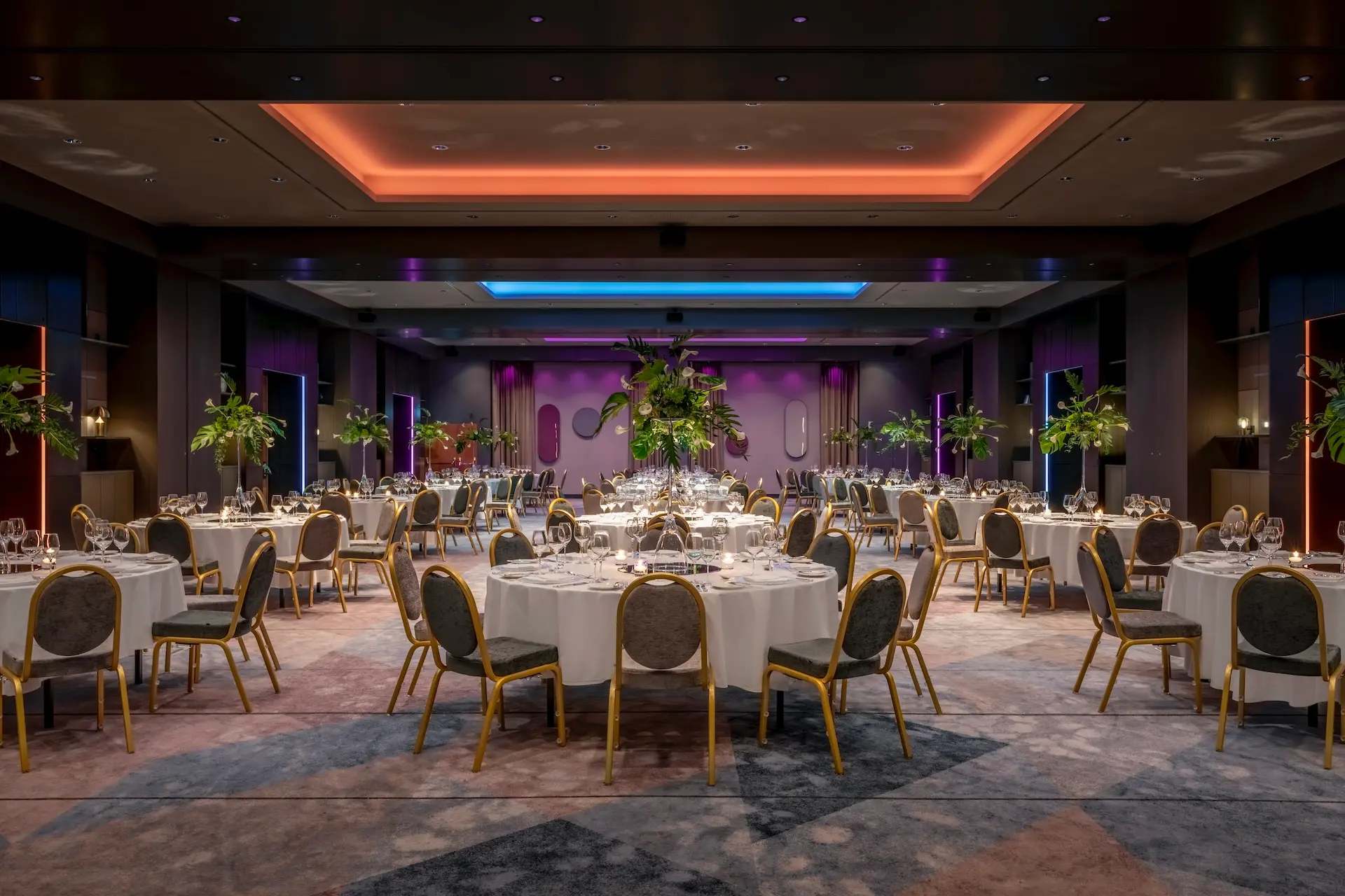Ob glamouröses Galadinner oder elegante Konferenz, mit einer Gesamtfläche von 2.351 m² bietet das Hotel Platz für bis zu 1.350 Gäste. Die Räume lassen sich individuell bespielen und bieten stilvolle Settings für Feiern jeder Art:
