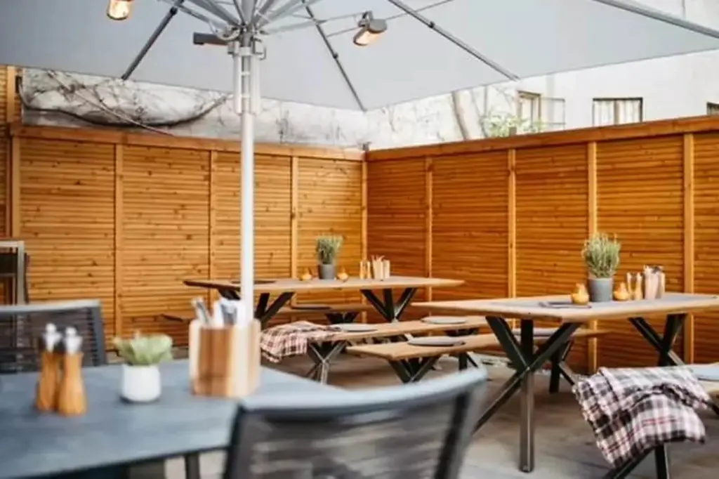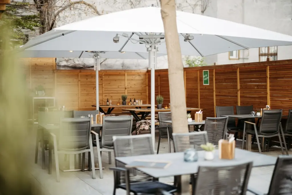Der idyllische und große Biergarten ist ein schön ruhiges Plätzchen mitten in der Stadt für Erholungssuchenden sowie kulinarischen Genießern der Wiener Bier- und Wirtshauskultur. An sonnigen Tagen bietet er unter schattenspendenden Kastanienbäumen, großen Sonnenschirmen oder fester Überdachung Sitzplätze für bis zu 130 Gäste. Auf diesem lauschigen Plätzchen lassen sich hervorragend Feste feiern. Dank des geschlossenen Hofes eignet er sich gut für Familienfeste mit Kindern.