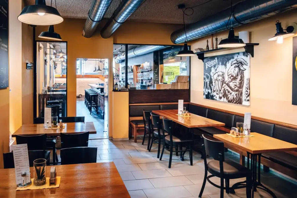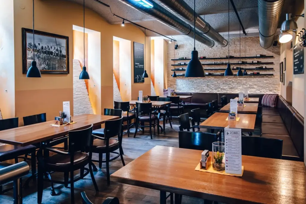 Urig gmiadlich, mit einem Touch Industriestil, sonnigen Wandfarben sowie bequemes Interieur – das Zobel lädt zum Entspannen und Genießen ein. Über eine Treppe gelangt man in das Subterrain liegende Restaurant, in dem man sofort von der stylischen Bar begrüßt wird. Die V-Form des Lokals teilt den Gastraum in 2 Bereiche, die kleineren Gruppen mehr Intimität geben oder für große Gruppen eine lockere Aufteilung schaffen. Auf der rechten Seite befindet sich im hinteren Teil zudem ein separater Raum, welcher durch eine Glastür geschlossen werden kann und somit für mehr Privatsphäre sorgt.