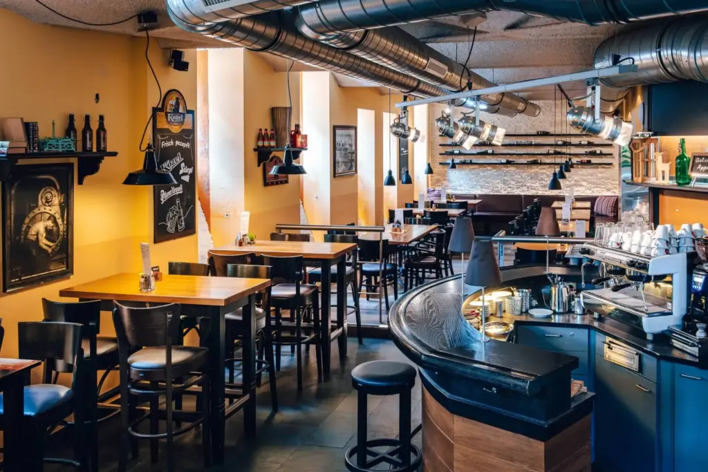 Direkt neben der langen Bar befindet sich der zweite Bereich und ist eher lässig gestaltet. Optimal für ein entspanntes Beieinandersitzen mit Freunden und Kollegen.